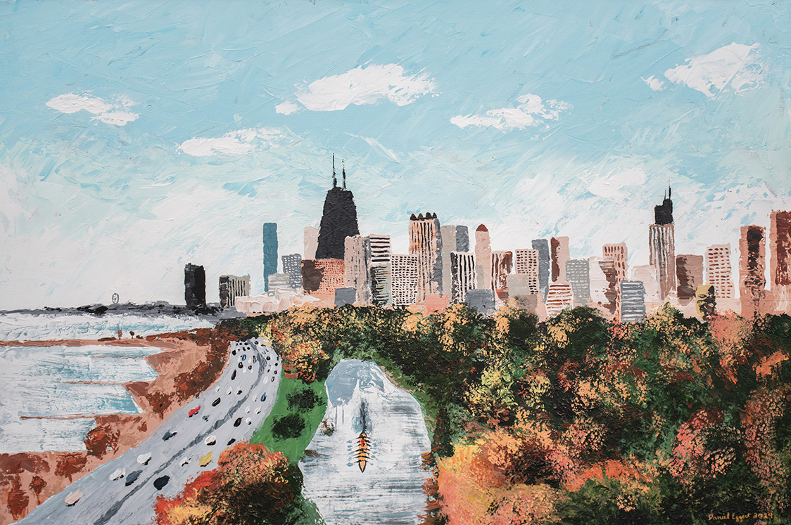 As an undergraduate, I had the pleasure of studying and creating a to-scale replica of Marcel Duchamp’s “Nude Descending a Staircase,” a masterpiece in the cubist art movement. I fell deeply in love with Duchamp’s style and my replica still hangs prominently in my Chicago home. I have leveraged these abstraction techniques and made them my own in order to present my viewpoint on a variety of topics.